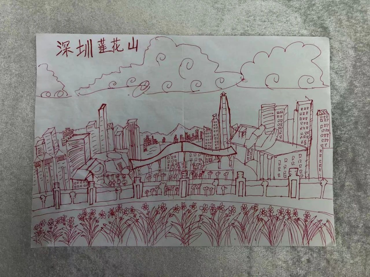 新員工手繪深圳。你能看出來是哪些標志性地點嗎?