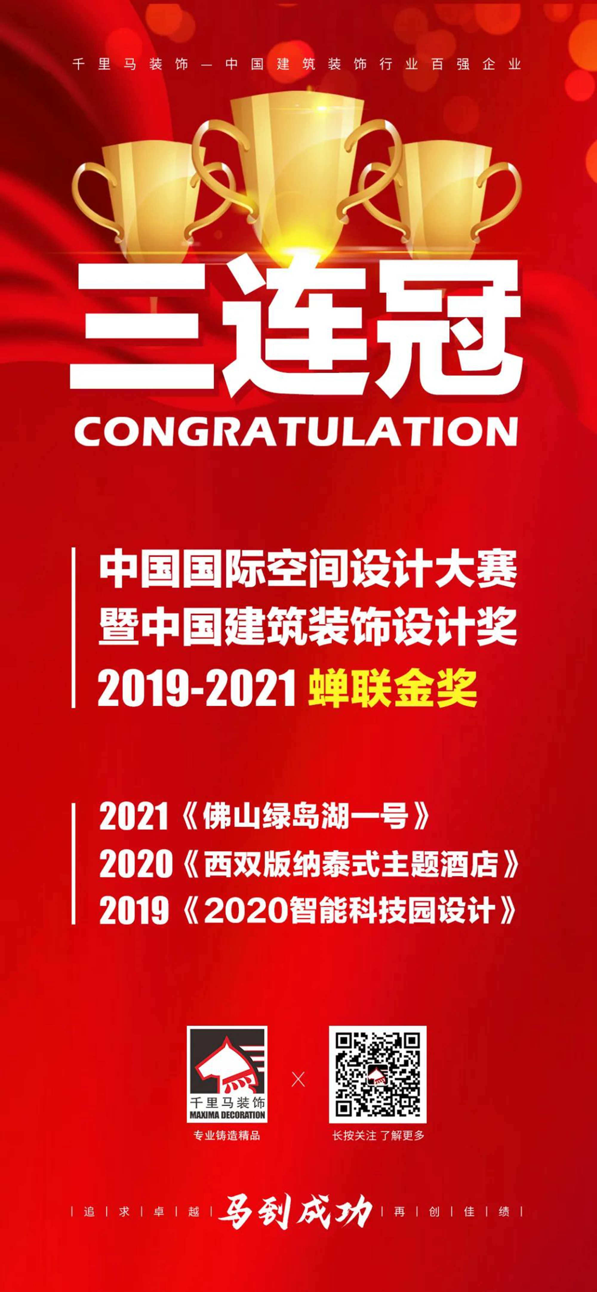 至此,千里馬裝飾集團已連續(xù)三年斬獲該大賽的最高榮譽“金獎”,這是對千里馬裝飾集團實力的最好詮釋。多年來,千里馬裝飾集團不斷加強人才隊伍建設(shè),不斷深化裝飾設(shè)計水平。未來,千里馬裝飾集團將繼續(xù)秉承“致力于改善人類工作、生活環(huán)境”的使命,不斷加大技術(shù)研發(fā)和人才平臺建設(shè)的力度,爭取更大貢獻與榮譽。