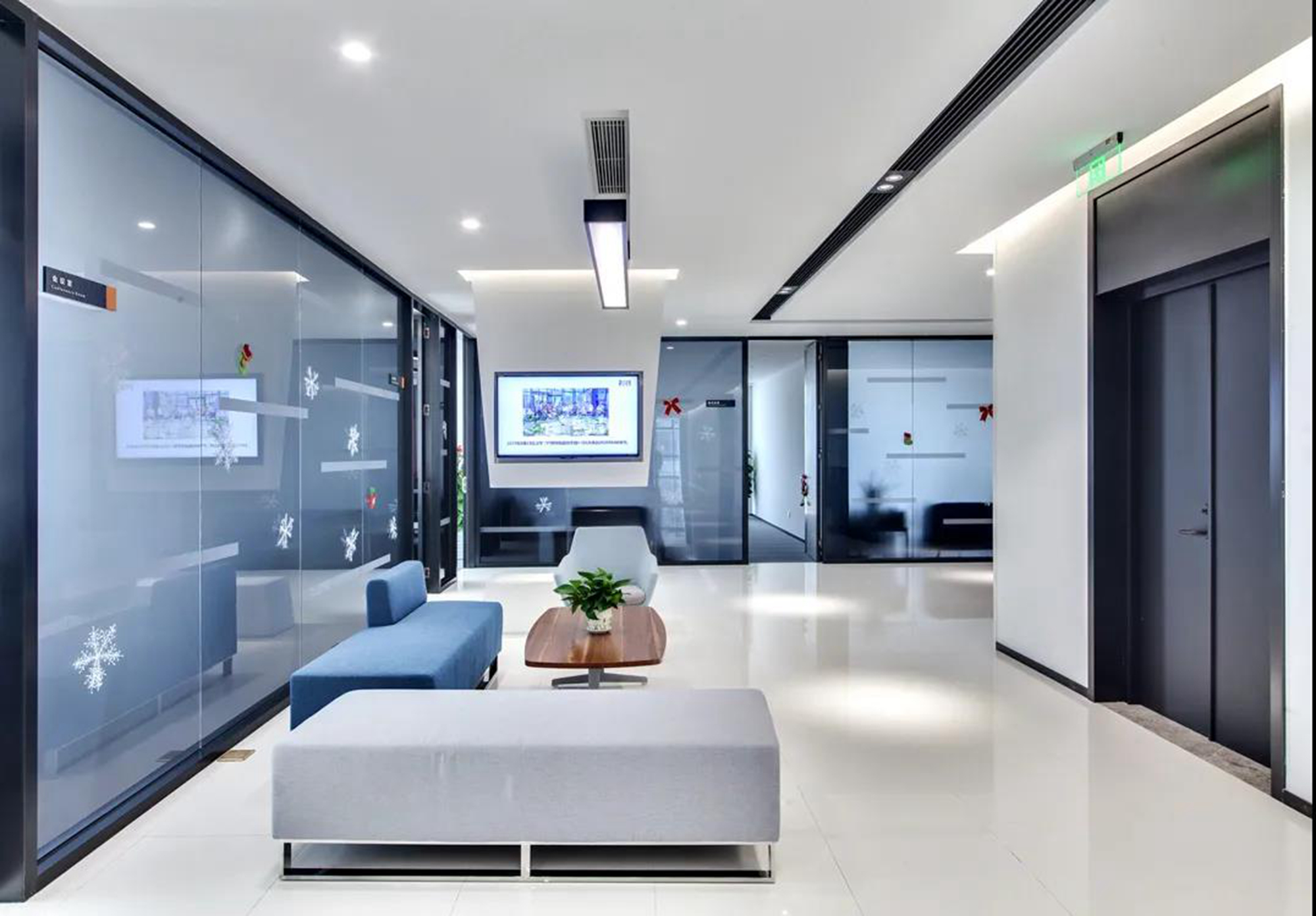 延續(xù)建筑脈絡(luò)的元素,運用動態(tài)流動的設(shè)計手法營造出層疊變換的“峽谷”形態(tài),深淺不一的“盎然綠意”串聯(lián)起不同的場景,給予訪客“山川懷谷”般靈動的游玩體驗;將柔和的線條滲透于各空間,讓水之意向以抽象的方式回歸空間,行走于墻面,流淌于天花,似靜似動。