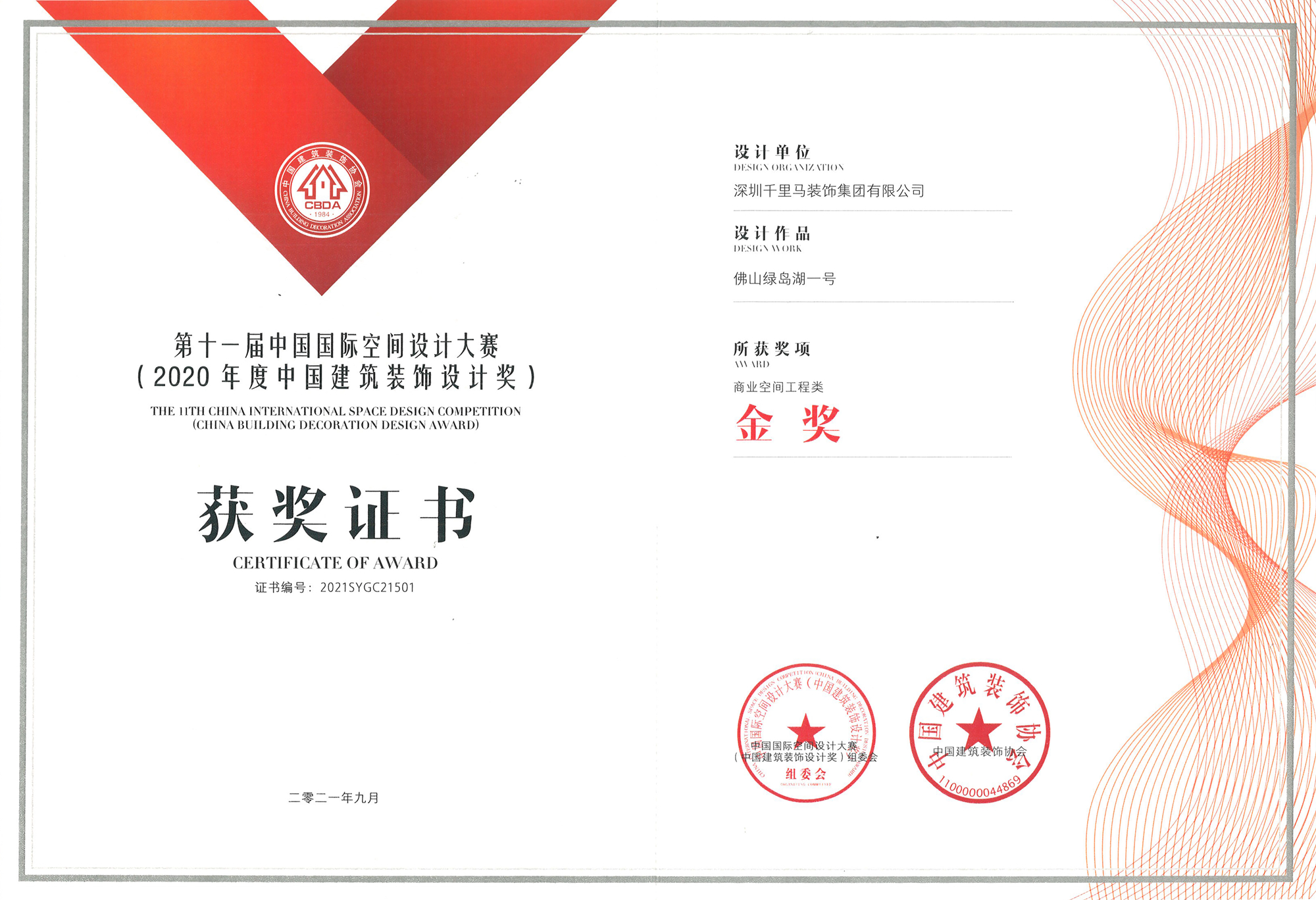 9月18日,2021中國建筑裝飾產(chǎn)業(yè)發(fā)展論壇暨第十一屆中國國際空間設(shè)計大賽(中國建筑裝飾設(shè)計獎)頒獎典禮在深圳福田圓滿落幕。