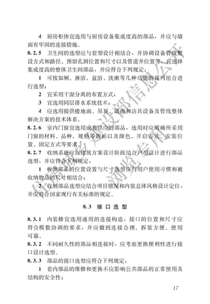 標(biāo)準(zhǔn)明確,裝配式住宅應(yīng)選用標(biāo)準(zhǔn)化程度高、接口通用性強(qiáng)、性能優(yōu)良、安裝高效、維護(hù)更換便捷的部品部件,滿足住宅安全耐久、綠色環(huán)保、健康舒適和經(jīng)濟(jì)適用等性能要求。