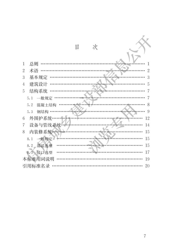 答:《標(biāo)準(zhǔn)》共分為8章。其中,“總則”和“術(shù)語”規(guī)定了《標(biāo)準(zhǔn)》的編制目的、總體原則、適用范圍和相關(guān)術(shù)語的基本概念;“基本規(guī)定”對設(shè)計(jì)選型應(yīng)遵循的基本原則、設(shè)計(jì)選型的主要內(nèi)容、部品部件及其接口的設(shè)計(jì)進(jìn)行了深入規(guī)定;“建筑設(shè)計(jì)”給出了建筑設(shè)計(jì)的總體原則,提出模塊及模塊組合的設(shè)計(jì)方法,提出了平立面標(biāo)準(zhǔn)化和多樣化設(shè)計(jì)的協(xié)調(diào)方法;“結(jié)構(gòu)系統(tǒng)”“外圍護(hù)系統(tǒng)”“設(shè)備與管線系統(tǒng)”和“內(nèi)裝修系統(tǒng)”從裝配式建筑四大系統(tǒng)的角度分別結(jié)合其特征明確了體系、性能指標(biāo)或部品部件的具體選型原則。